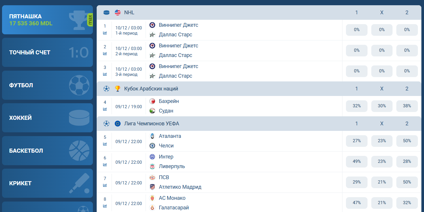 - Если не состоялось 1-2 события — за 8 угаданных событий баллы не начисляются.