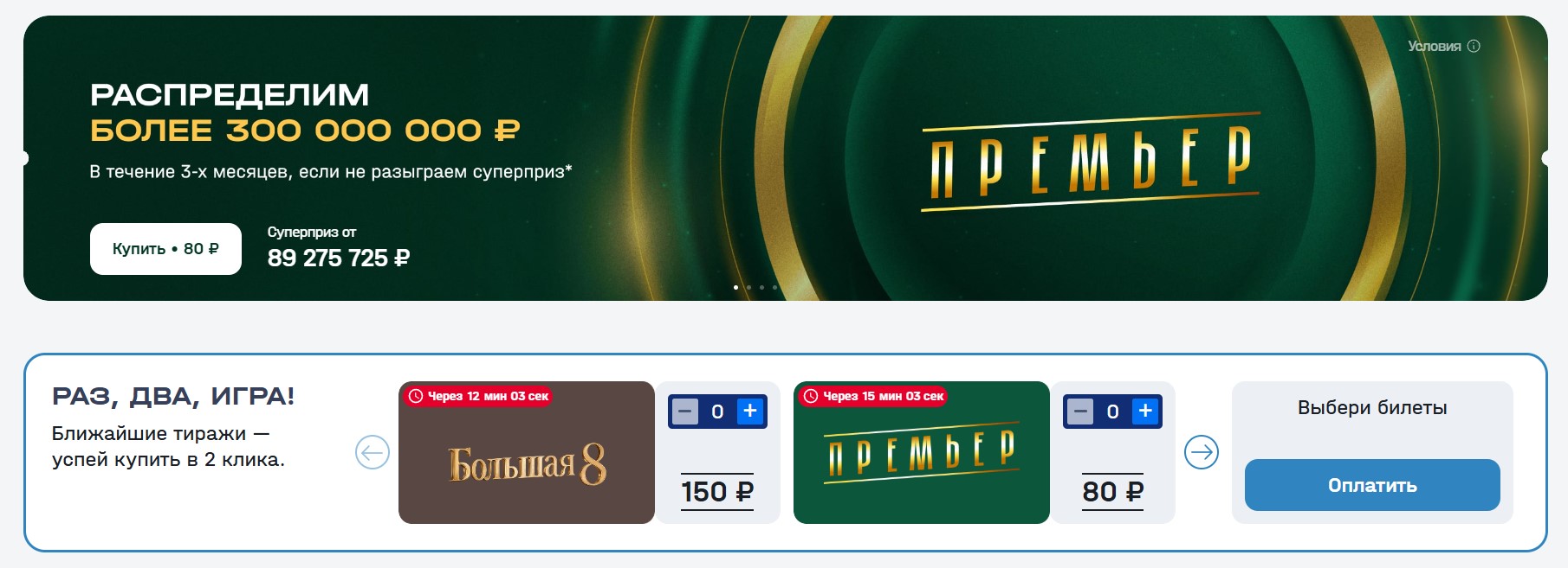 - Раздел Суперэкспресс с актуальными розыгрышами и размером джекпота.