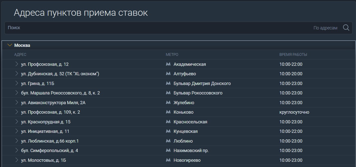 Балтбет — один из немногих легальных букмекеров, где пополнить счет и сделать ставку можно наличными в офлайн-клубе. Адреса ППС — в разделе «Адреса» на сайте.