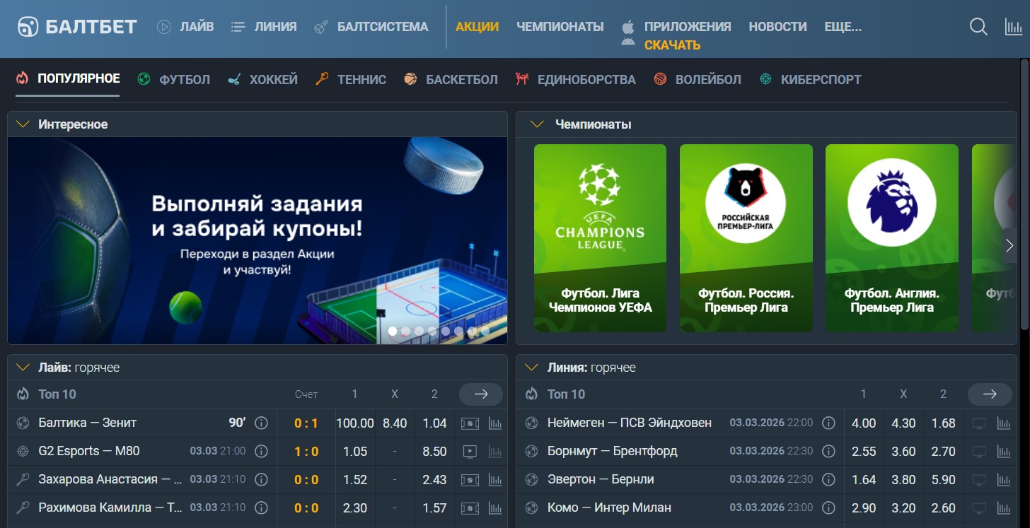 Балтбет концентрируется на российских соревнованиях — линия на РПЛ, ФНЛ и внутренние кубки глубже, чем у ряда конкурентов.