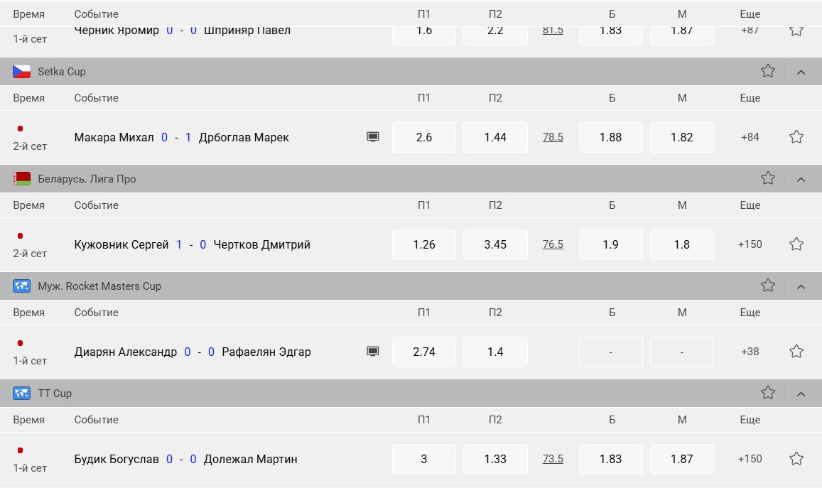 Букмекер предлагает ставки на разнообразные дисциплины. Линия обновляется в режиме реального времени, обеспечивая актуальность коэффициентов. Маржа варьируется в зависимости от популярности турнира и вида спорта.